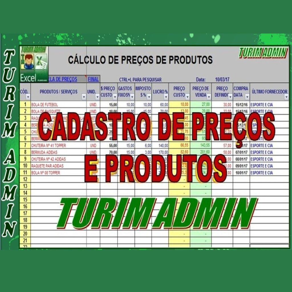 PLANILHA CADASTRO DE PRODUTOS E FORMAÇÃO DE PREÇOS (50,00 R$)
