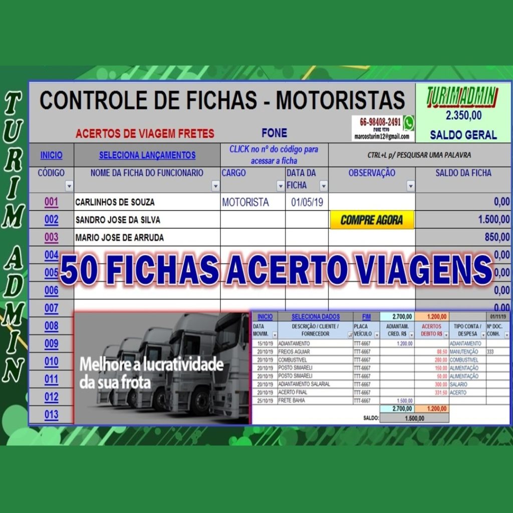 PLANILHA COM 50 FICHAS PARA ACERTO DE VIAGENS DE FRETES MOTORISTAS R$ 80,00