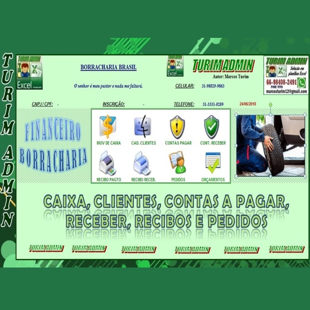 COMPRE PLANILHA CONTROLE DE BORRACHARIA, CAIXA, A PAGAR, RECEBER, CLIENTES, RECIBOS E PEDIDOS R$ 140,00