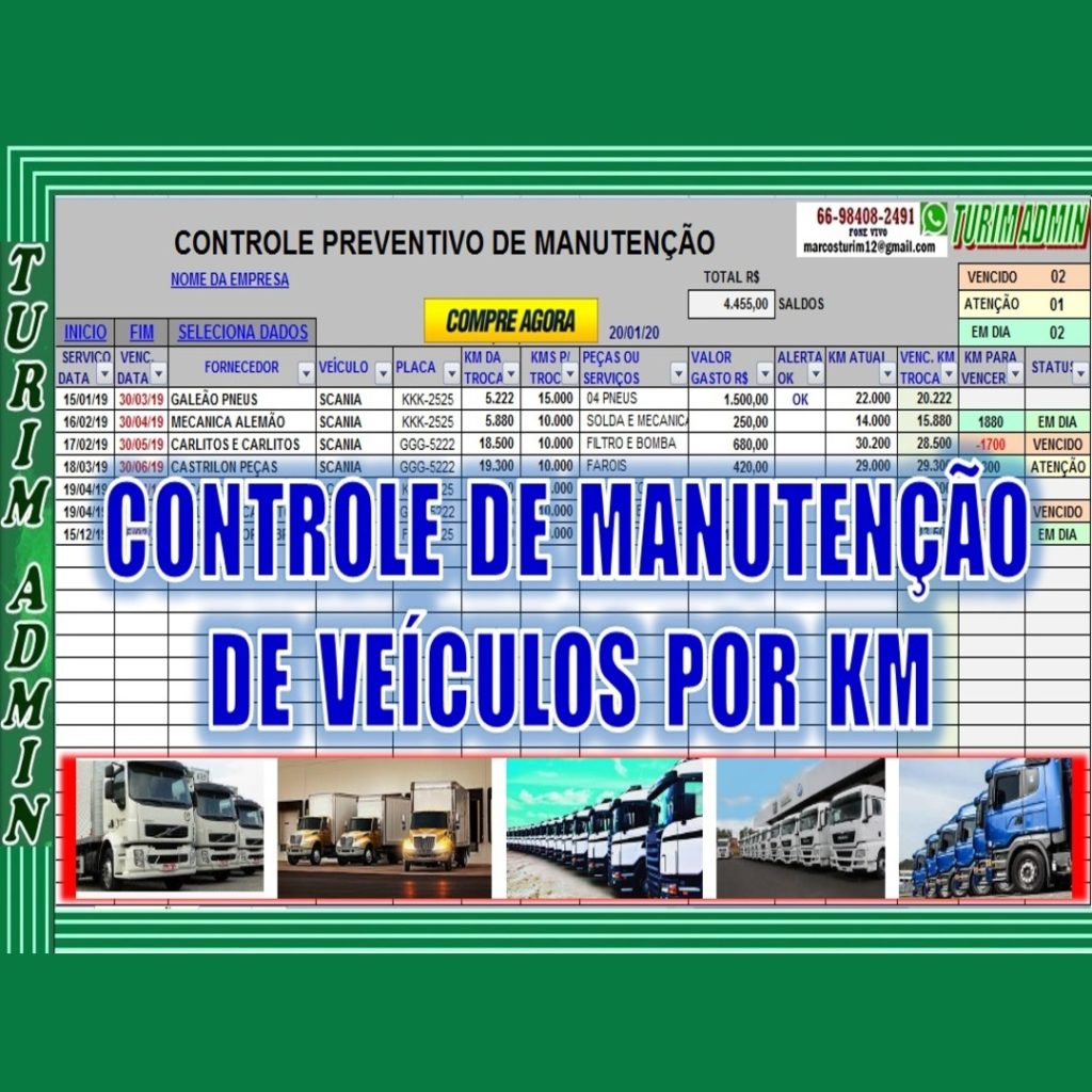 PLANILHA CONTROLE MANUTENÇÃO PREVENTIVA DE VEÍCULOS E FROTA POR KM E DATA VENCIMENTO R$ 60,00 – To no Zap – 66-98408-2491.