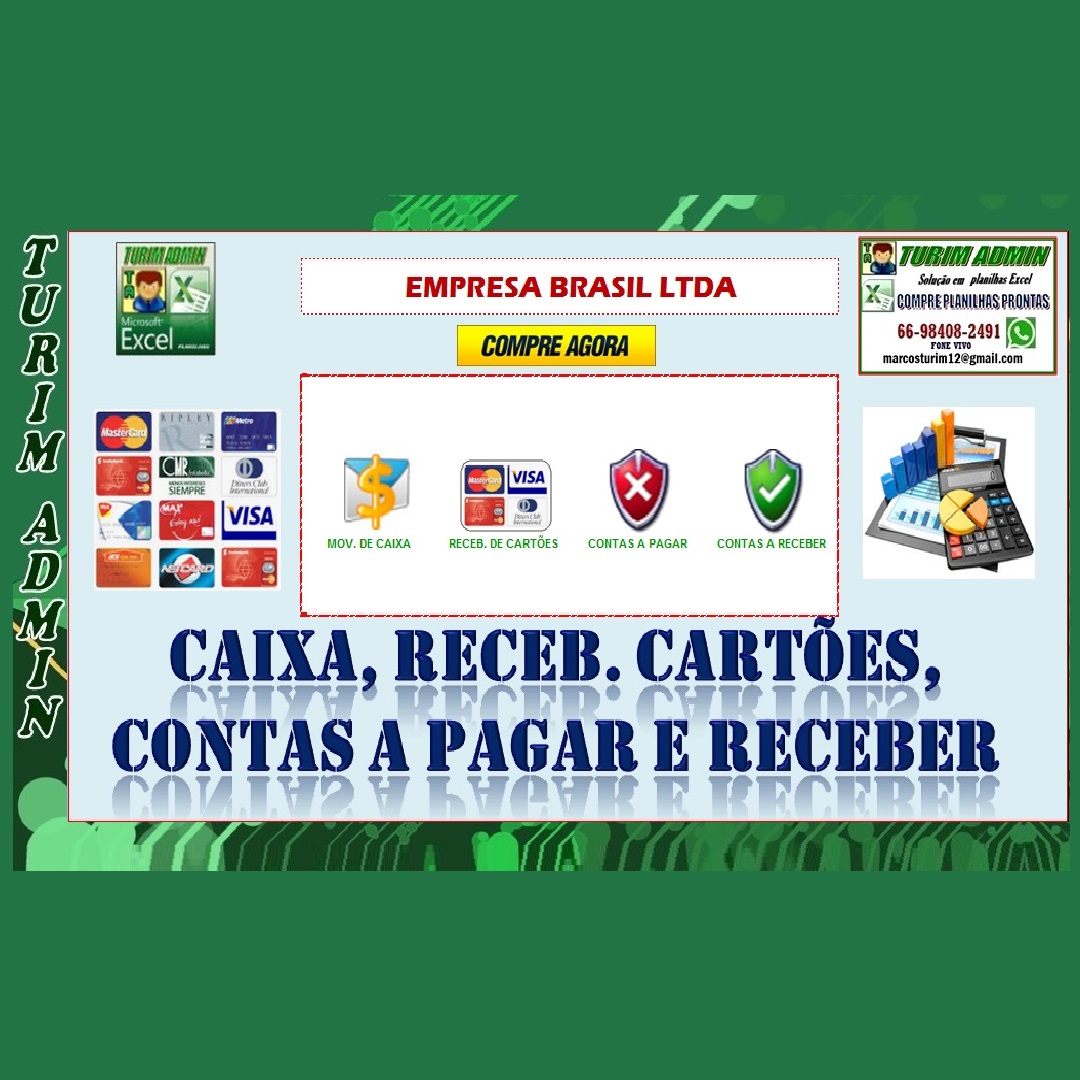 PLANILHA de Fluxo de Caixa, Recebimento de Cartões, Contas a Pagar, e Receber R$ 100,00